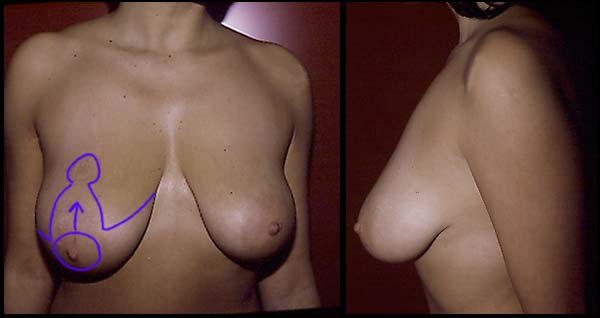 In the chapter of reduction mammaplasties many different techniques were described. All the procedures have in common the removal of part of the inferior pole of the gland and the repositioning of the areola/nipple complex so as to re-establish a normal breast volume and shape. The residual gland, as well as the skin, are carefully repositioned so as to limit the scars to a minimum. There are particular (very rare) cases where the areola-nipple complex needs to be displaced and reset into a new position.