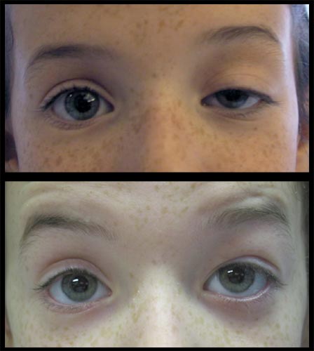 Si tratta di sospendere la palpebra mediante un tirante. Questo viene ottenuto prelevando un frammentino di tessuto da un tendine della coscia. Il tirante viene fissato al muscolo elevatore del sopracciglio. Quando il paziente aggrotterà il sopracciglio alzerà anche la palpebra. Seguendo la tecnica di sospensione alla palpebra, si ottiene una correzione statica. La palpebra rimane più aperta rispetto a prima dell'intervento, ma la sua escursione non cambia.